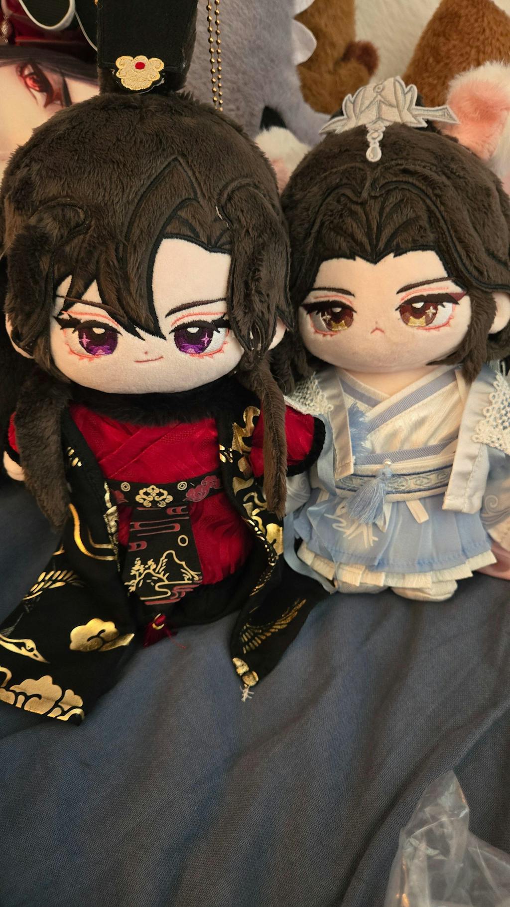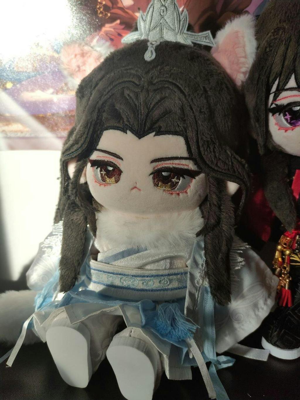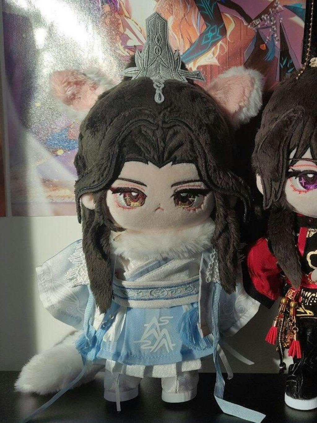This little grumpy Shizun kitty plush is super adorable! I love the fluffy magnetic ears, and the tail are both the softest to the touch, and stay on pretty well! His outfit looks super cute, and looks like he's ready for the winter :D Chu Wanning looks great with my Taxian Jun plushie (wish I could get the Mo Ran plush too but its out of stock! T3T)