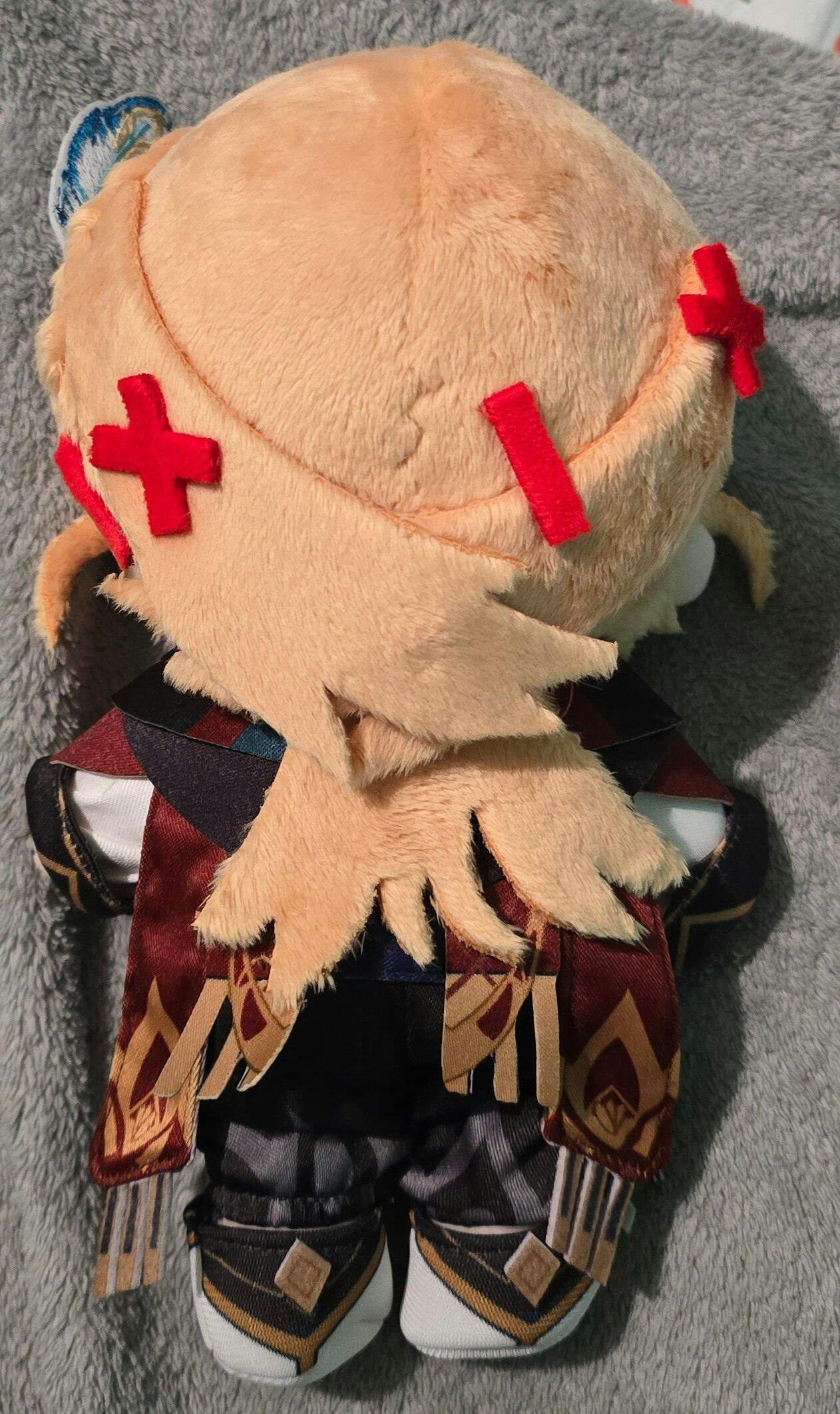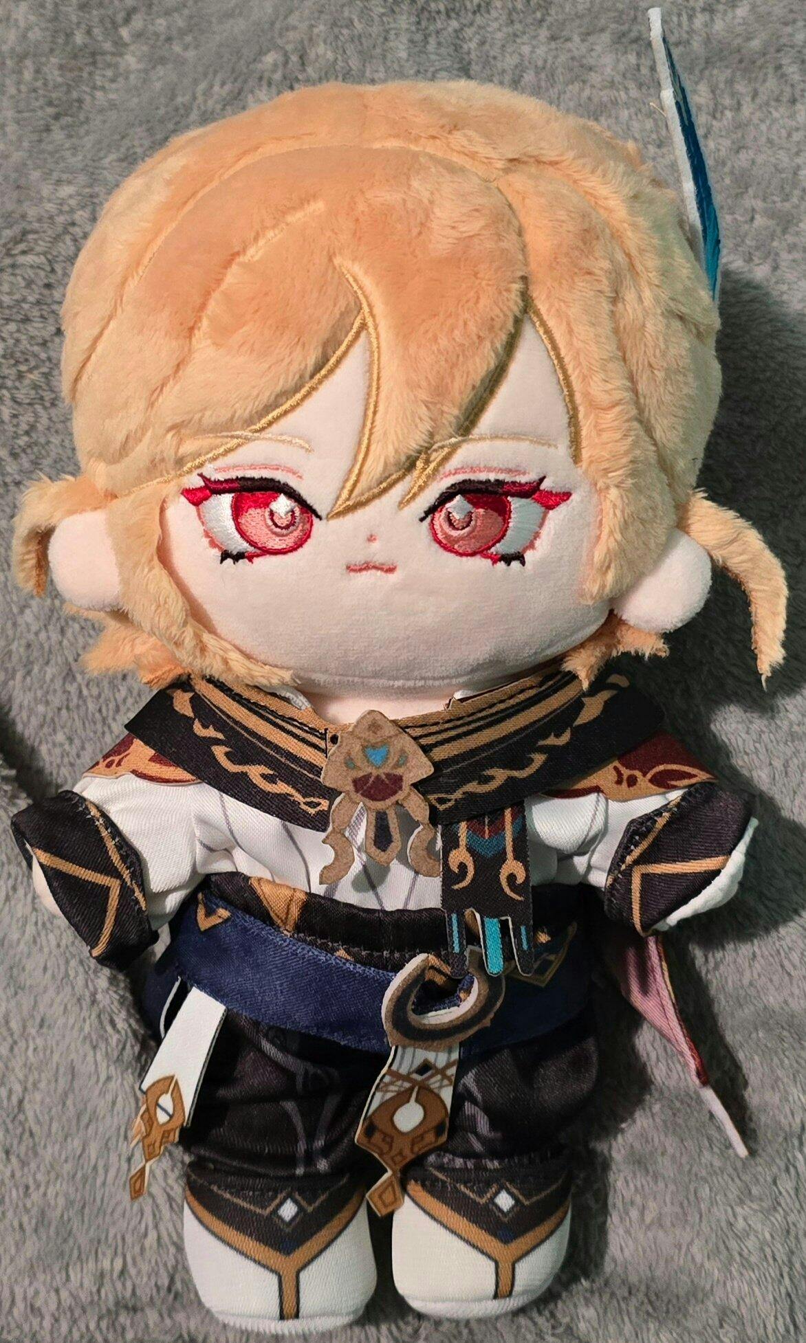I have been waiting for this Kaveh plush to come for a few months and he finally arrived safely! He was a preorder so I knew it would take a while and the customer service agent(s?) were very kind and prompt to respond to any questions I had on the way. Tbh he's not perfect, he did have glue strands coming from every part that's glued down like his hair accessories for example, and his nips are stitched too low lol but with clothes, it's not noticeable, he's very cute in the face as always plushwonderland does their faces beautifully and he looks good next to Alhaitham so honestly I'm really happy! I wish he still came with a badge but I guess I missed out on that qwq if his face is long like mine was, just squish his head to fix it, because that's what I did and he looks better imo