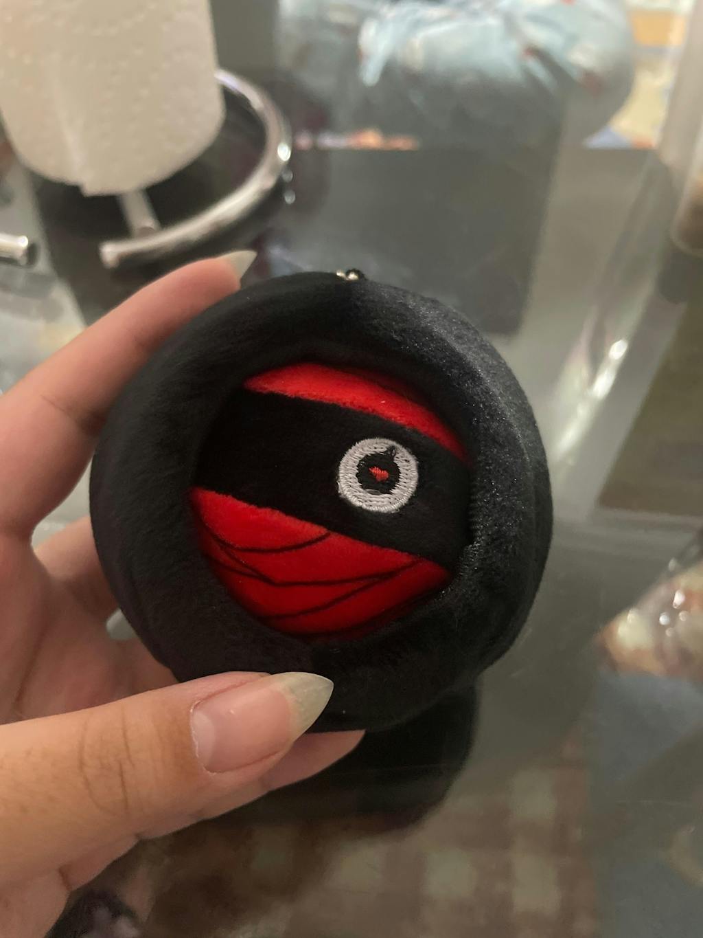the stress ball is secure inside the hood so you don’t need to worry about it slipping out if you hang it on a bag, it’s soft to the touch, and it’s adorable!
